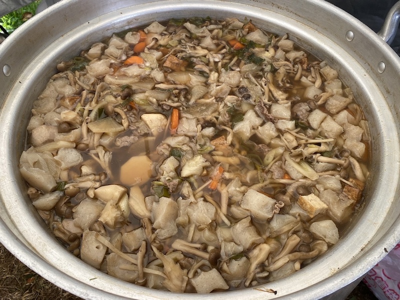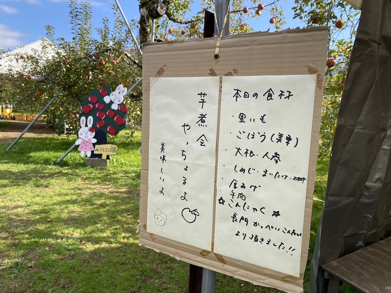 寒くなってきたので、りんご食べて最後に芋煮を食べて身も心も温かくなってお帰りください。